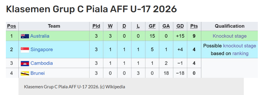 Mereka jadi pemuncak klasemen Grup C dengan koleksi sembilan angka. Kini Australia sudah resmi menginjakkan kaki ke babak semifinal Piala AFF U-17 2026.