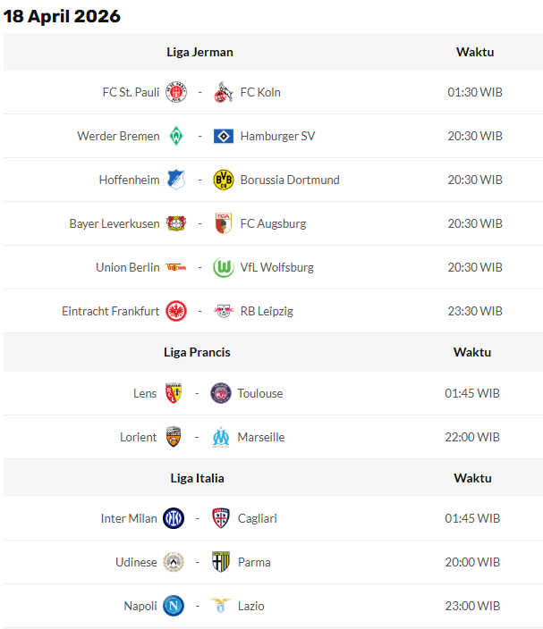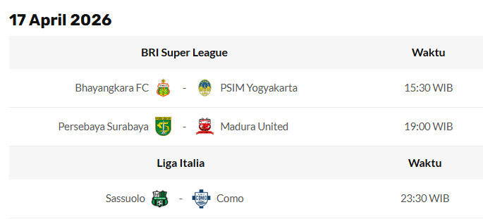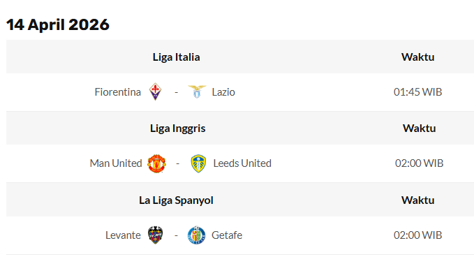PERTANDINGAN BOLA Update Jadwal Pertandingan Bola 13 April 2026 April 13, 2026 Jadwal Pertandingan Hari Ini ter-Update tanggal 13 April 2026