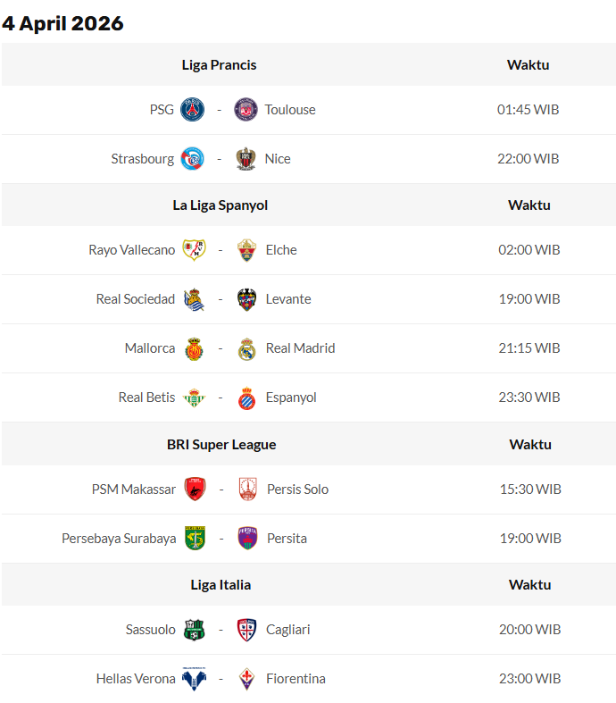 PERTANDINGAN BOLA Update Jadwal Pertandingan Bola 3 April 2026 April 3, 2026 Jadwal Pertandingan Hari Ini ter-Update tanggal 3 April 2026
